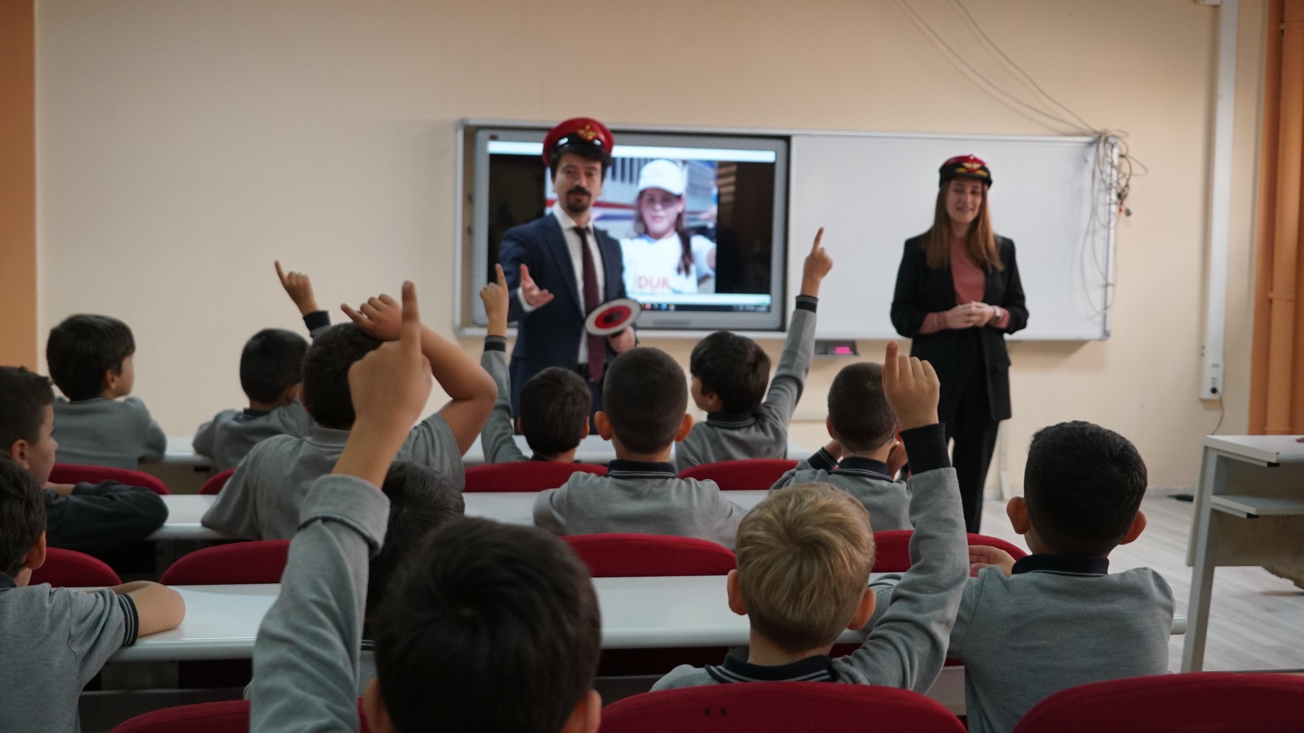 öğrencilere hemzemin geçitlerden emniyetli geçiş için uygulamalı eğitim