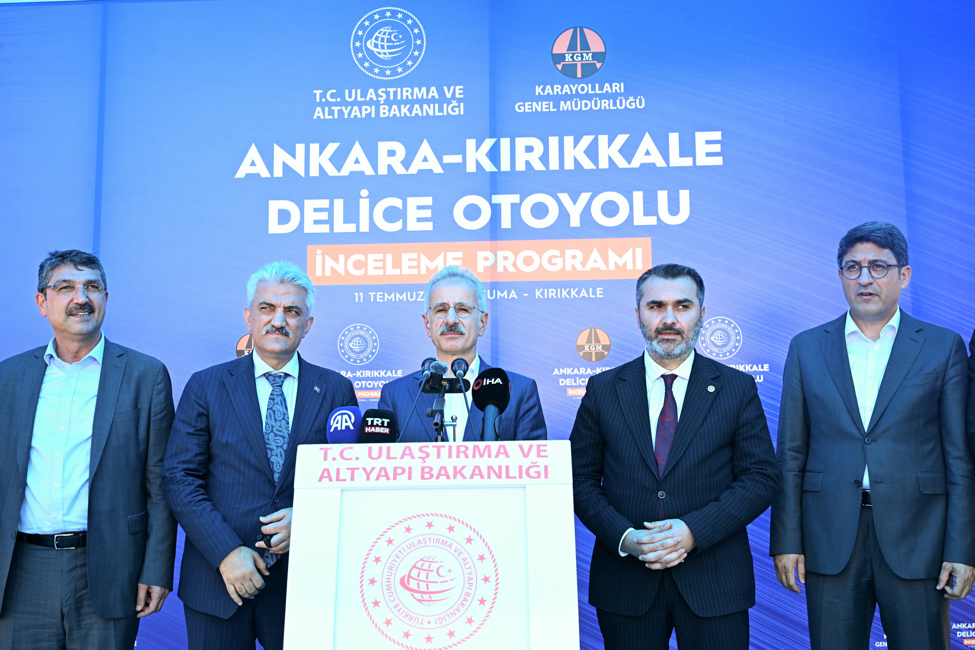 14 Haziran’da, bir başka dev proje olan Kırıkkale-Çorum-Samsun Hızlı Tren Hattı’nın 120 kilometrelik Kırıkkale-Çorum etabının temelini attıklarını anımsatan Bakan Uraloğlu, “Yani 2023 yılında hizmete açtığımız Ankara-Sivas Hızlı Tren Projesi ile birlikte hızlı tren konforuyla tanışan Kırıkkale’yi Delice üzerinden ileride Samsun’a ve tüm Doğu Karadeniz’e bağlayacak 2. hızlı demiryolu hattımızı da inşa etmiş olacağız ve şehrimizi de bu vesileyle Karadeniz’e bağlamış olacağız. Yine Yerköy üzerinden Kayseri’ye de Kırıkkale’mizi hızlı demiryoluyla bağlamış olacağız. Oradaki çalışmalarımız da devam ediyor. Bugün ise başkentimiz Ankara’dan, İç Anadolu’nun sanayi ve tarım merkezi Kırıkkale’mize ve bereketli Delice ovasına uzanarak bu vizyonu taçlandıran Ankara-Kırıkkale-Delice Otoyolumuzdaki çalışmaları sizlerle paylaşmak istiyorum.” dedi.