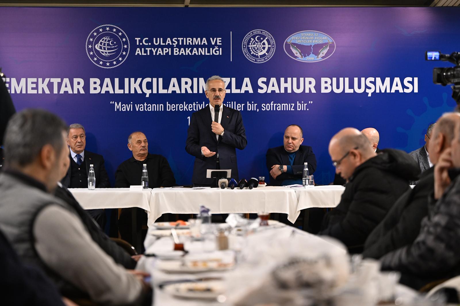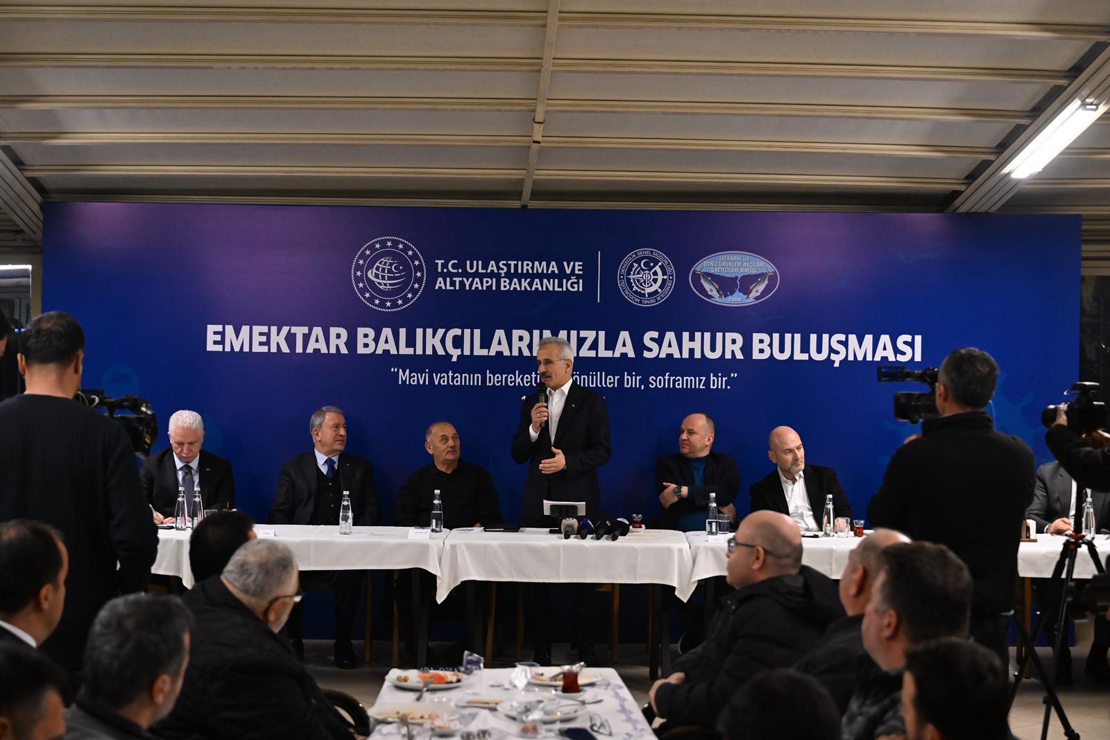 Ulaştırma ve Altyapı Bakanı Abdulkadir Uraloğlu, balıkçılarla sahur programında buluştu. Türkiye’de gemi siciline kayıtlı su aracı sayısının yaklaşık 47 bin olduğunu dile getiren Bakan Uraloğlu, sözlerine şu şekilde devam etti: