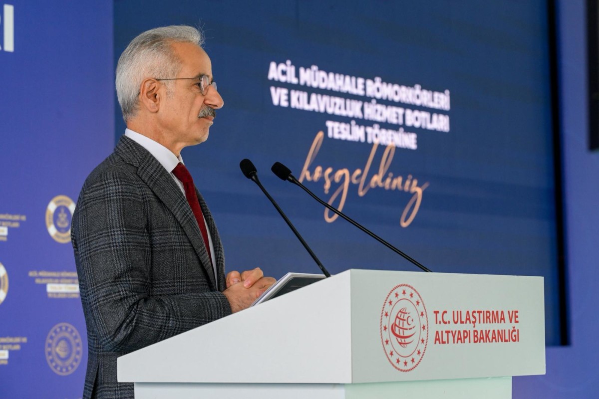 Ulaştırma ve Altyapı Bakanı Abdulkadir Uraloğlu, Kıyı Emniyeti Genel Müdürlüğüne Acil Müdahale Römorkörleri ve Kılavuzluk Hizmet Botları Teslim Töreni’nde konuştu. Bakan Uraloğlu, 2 Acil Müdahale Römorkörü ile 6 Kılavuzluk Hizmet Botu’nu Kıyı Emniyeti Genel Müdürlüğü’nün güçlü filosuna katmaktan duyduğu memnuniyeti dile getirdi.