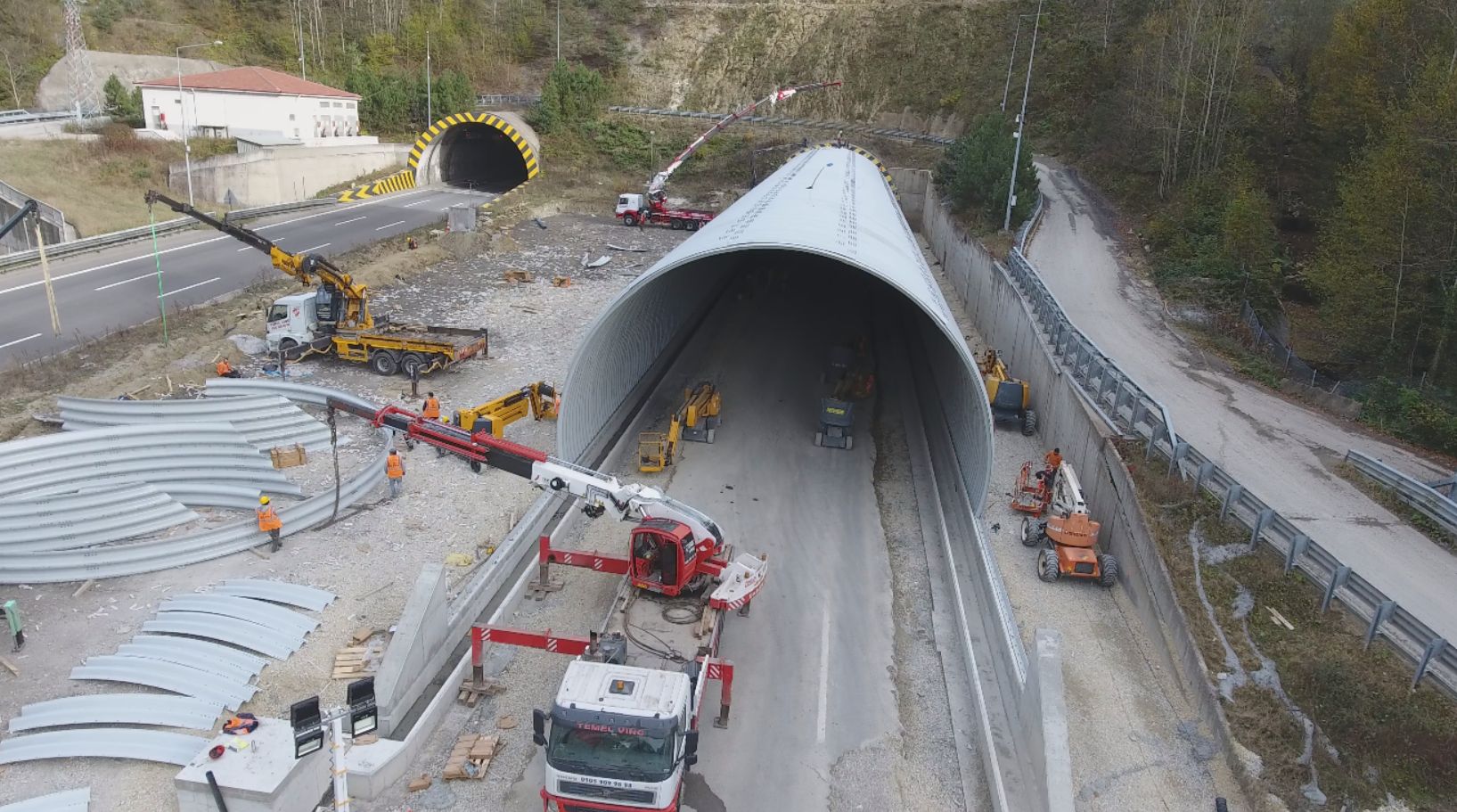 portalı çelik konstrüksiyon olarak Ankara yönü tünel girişi 90 metre