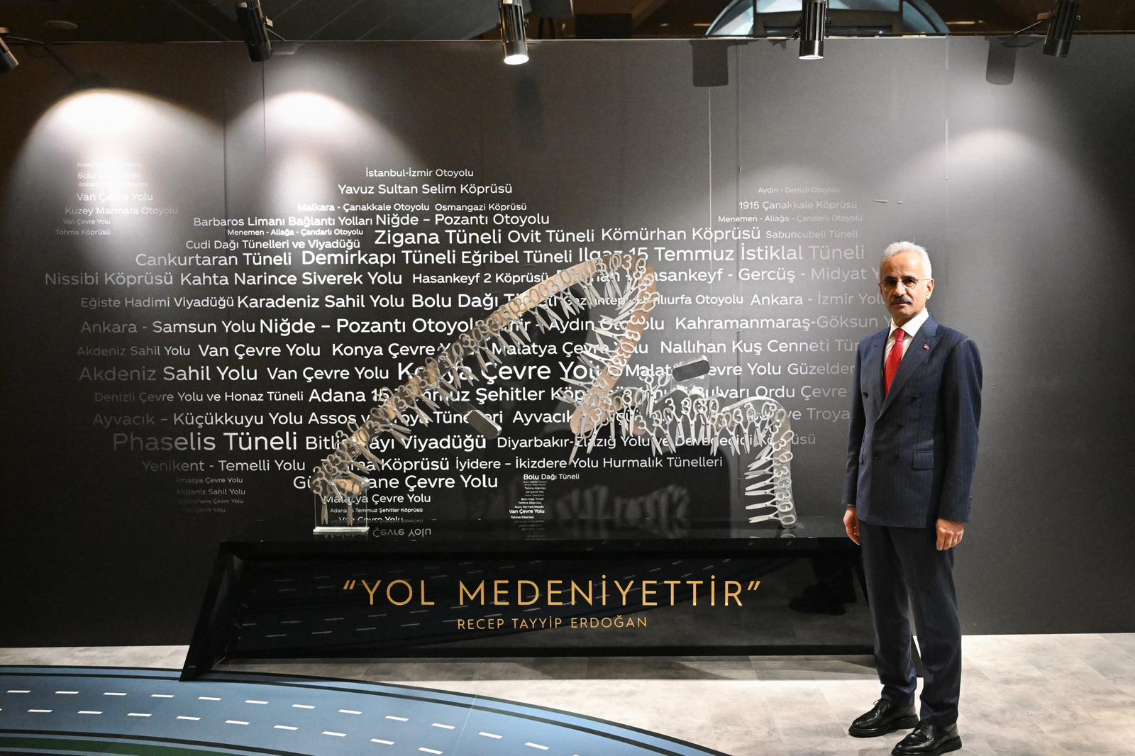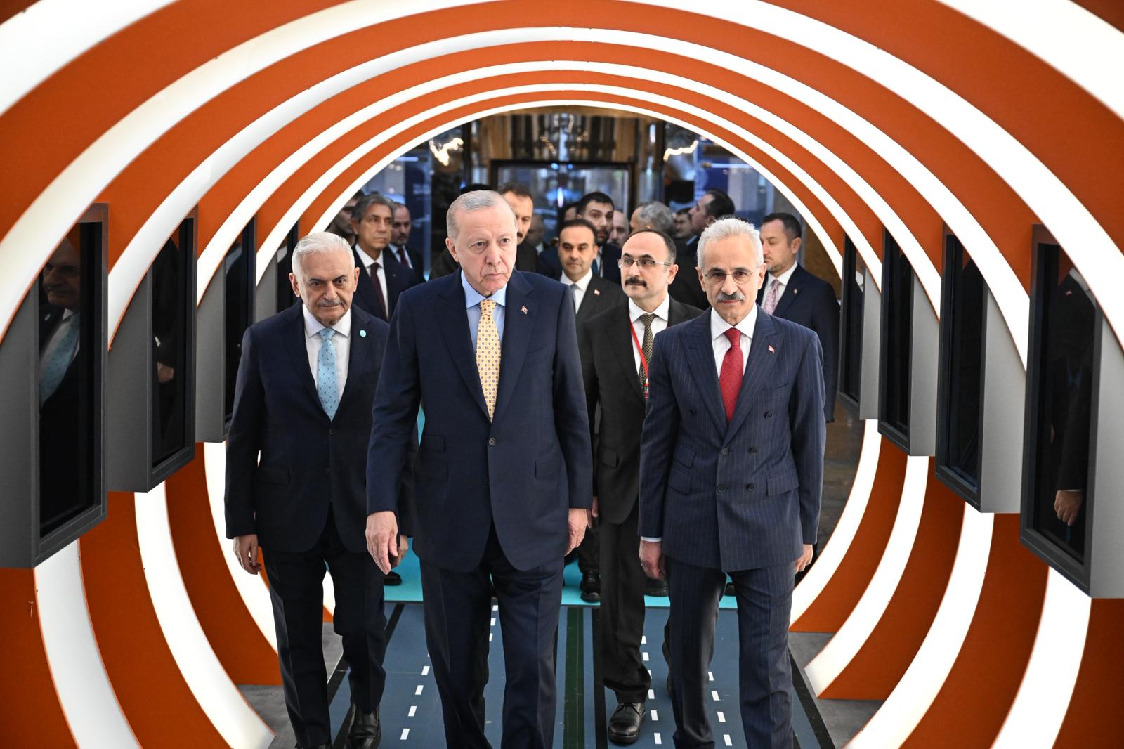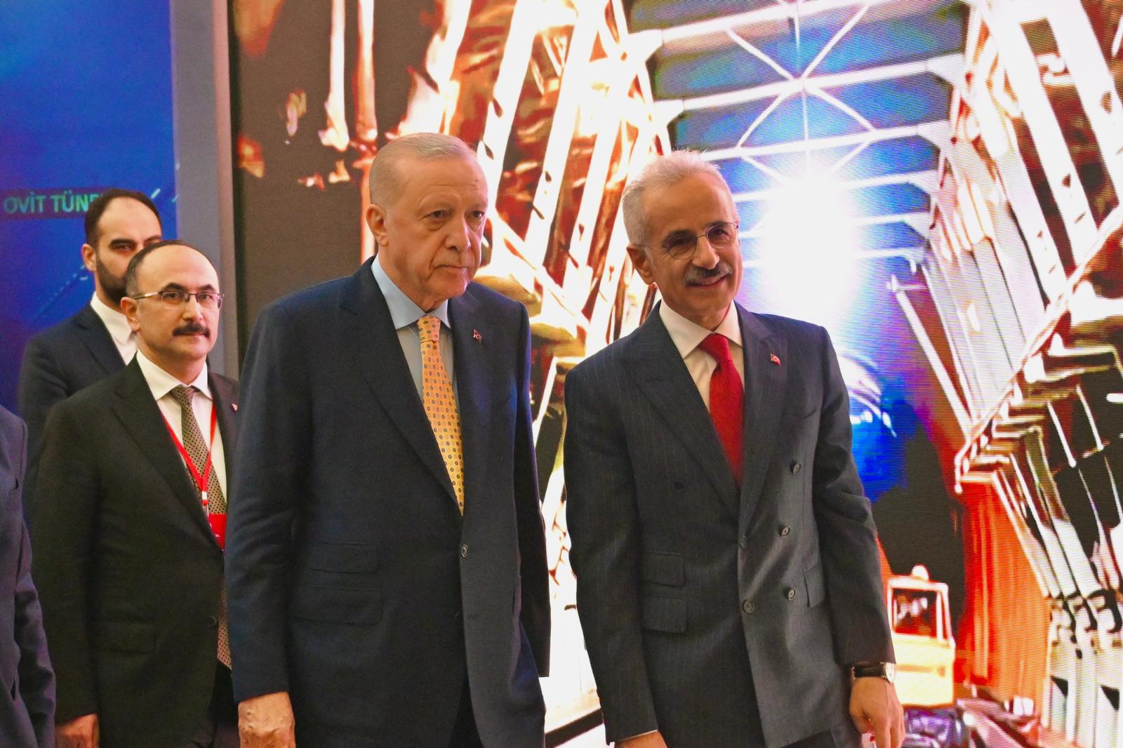 Cumhurbaşkanı Recep Tayyip Erdoğan ile Ulaştırma ve Altyapı Bakanı Abdulkadir Uraloğlu, 30 Bin Kilometre Bölünmüş Yol eşiğinin aşılması dolayısıyla düzenlenen tören öncesinde Karayolları Gayret ve Liderlik Sergisi’ni ziyaret etti.