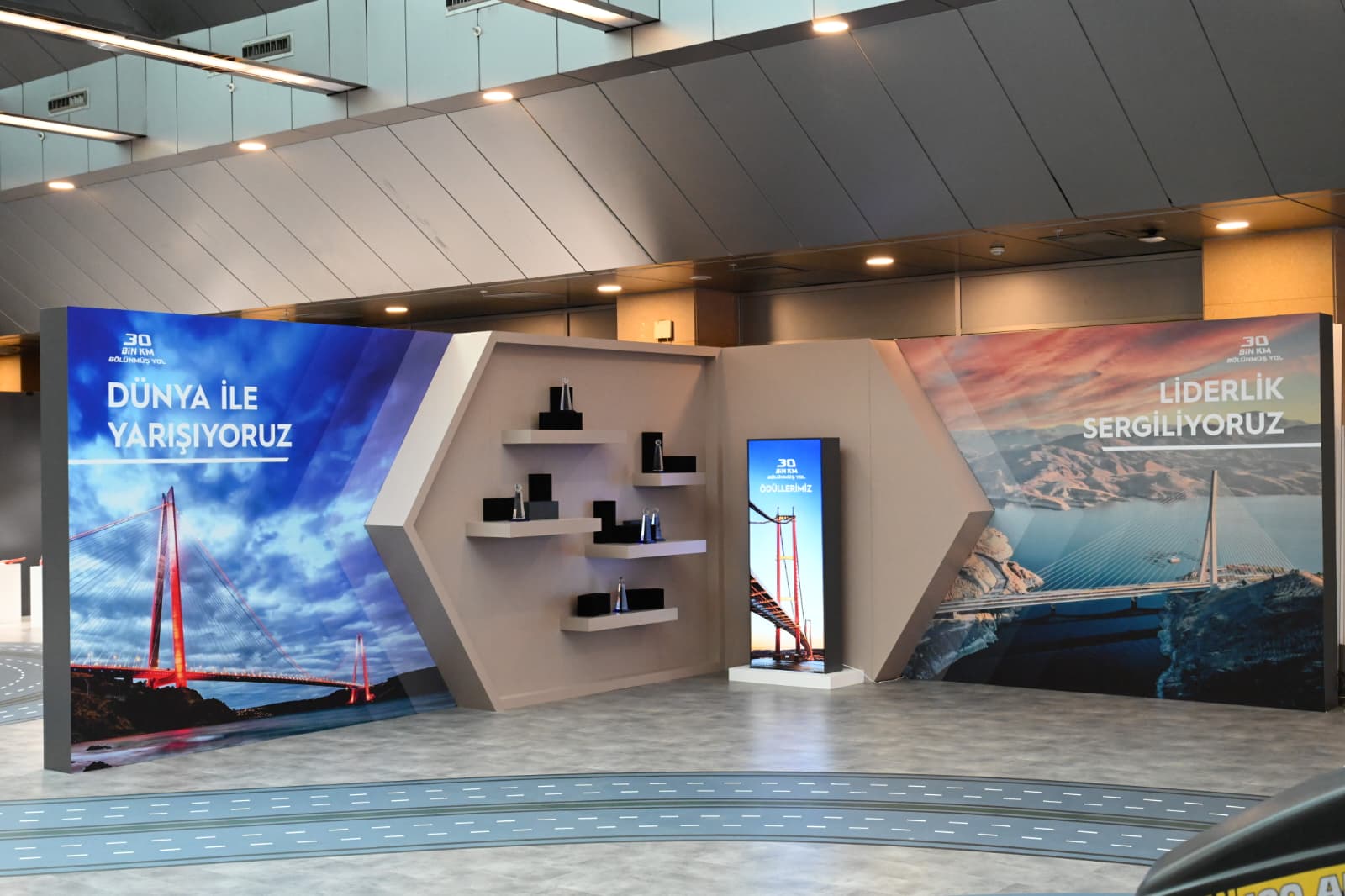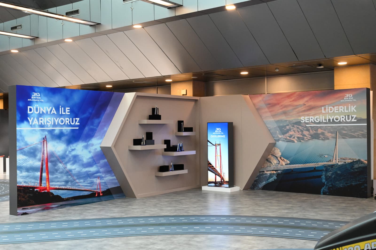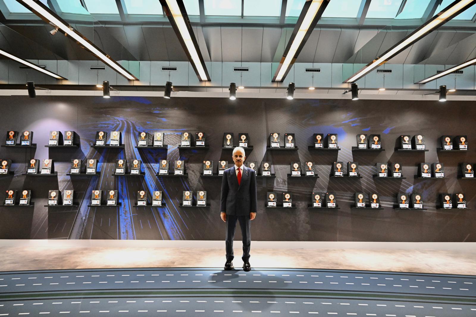 Cumhurbaşkanı Recep Tayyip Erdoğan ile Ulaştırma ve Altyapı Bakanı Abdulkadir Uraloğlu, 30 Bin Kilometre Bölünmüş Yol eşiğinin aşılması dolayısıyla düzenlenen tören öncesinde Karayolları Gayret ve Liderlik Sergisi’ni ziyaret etti.