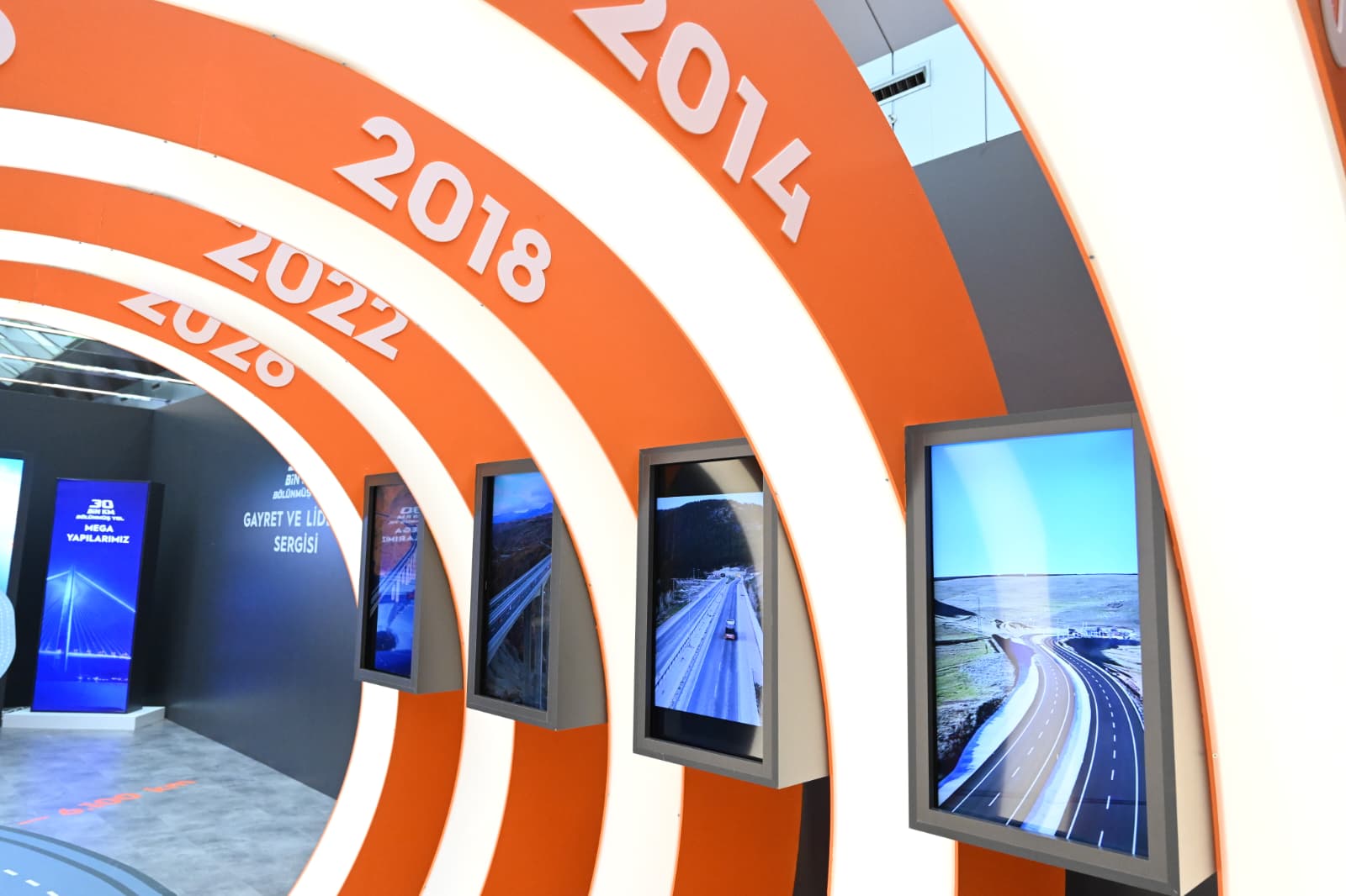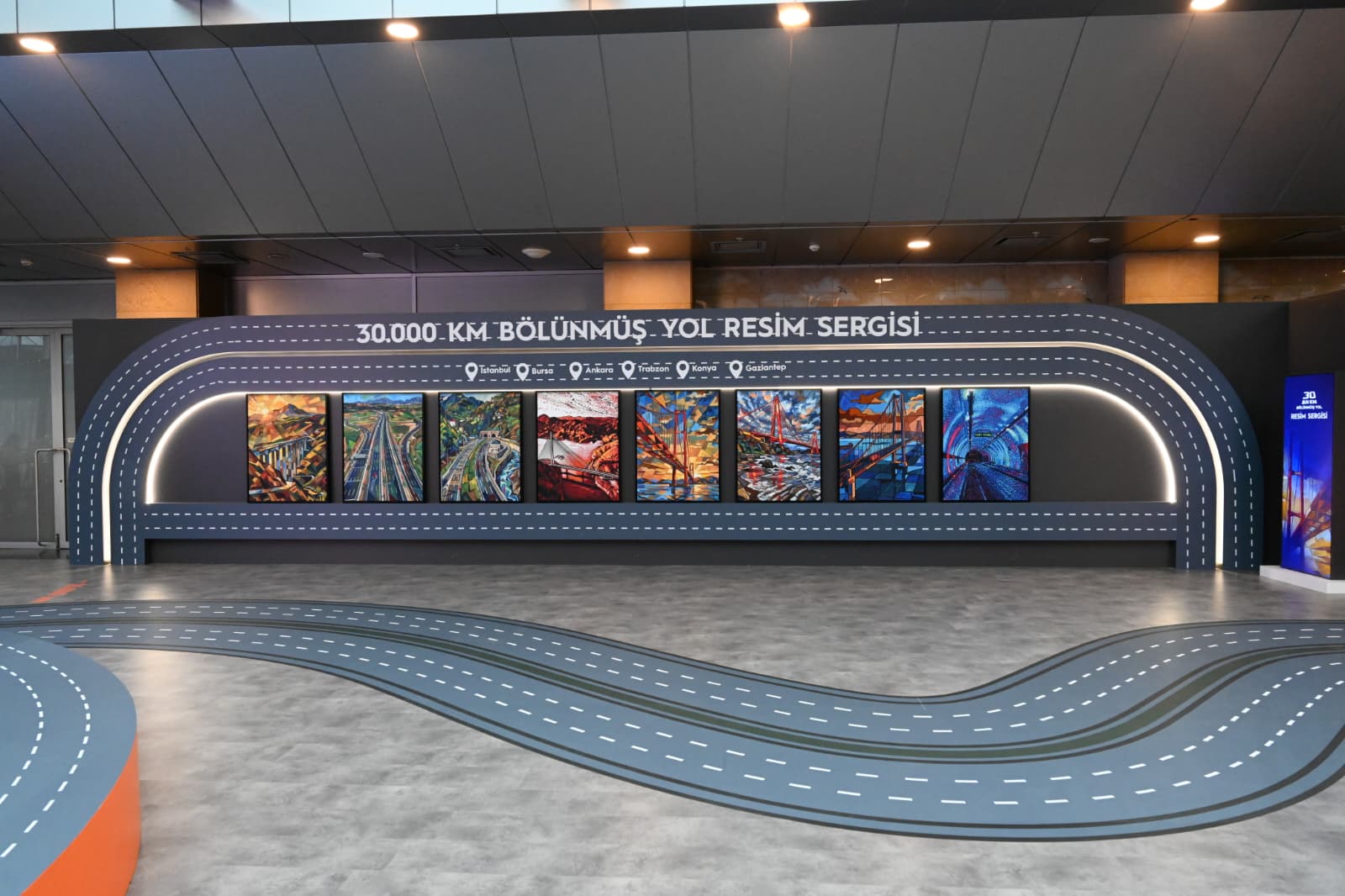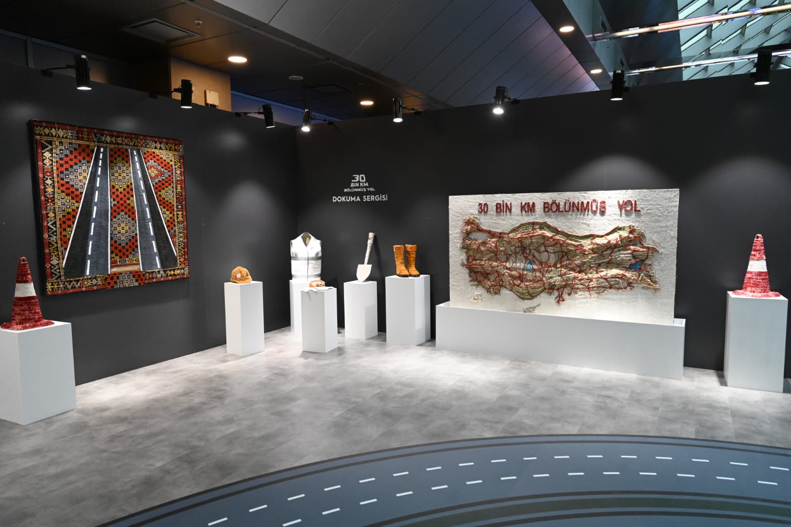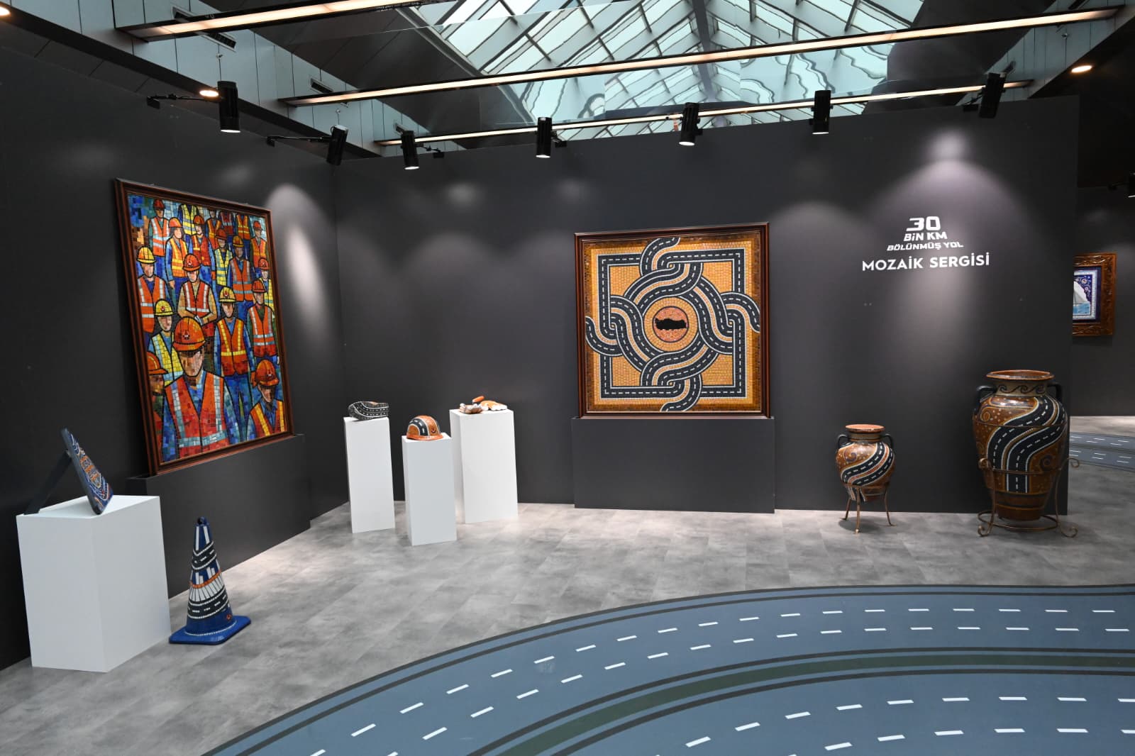 Sergi alanında; mozaik, fotoğraf, resim ve dokuma çalışmalarının yanı sıra, geçmiş açılış törenlerinde kullanılan makaslardan oluşan özel bir bölüm yer aldı. Karayolları projelerinin ulusal ve uluslararası alanda aldığı ödüller de sergide ayrı bir bölümde sergilendi.