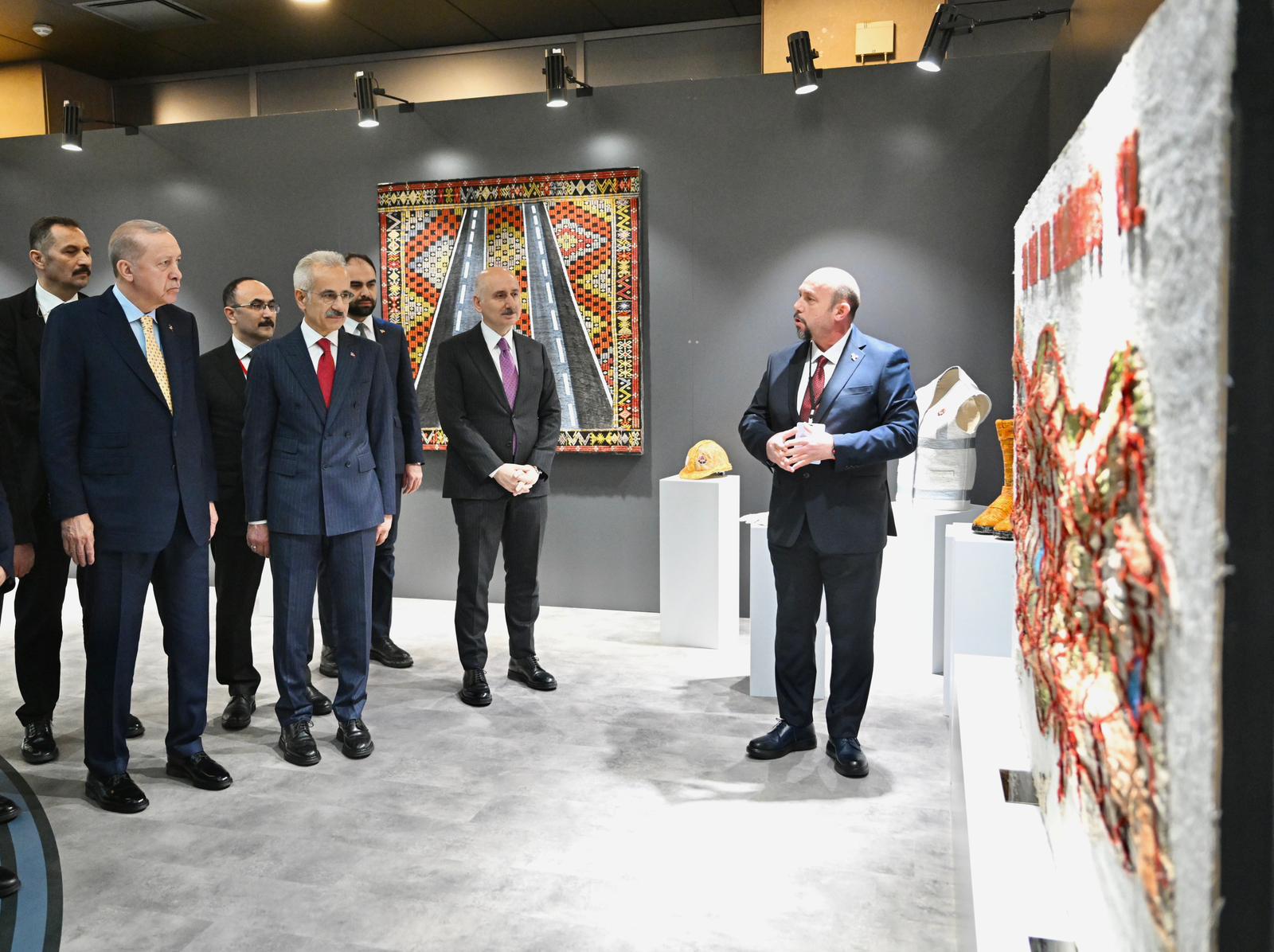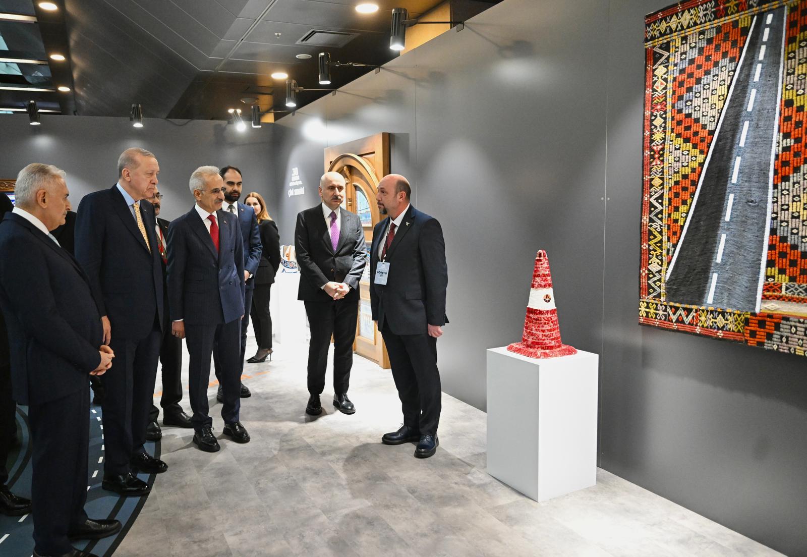 Cumhurbaşkanı Erdoğan ve Bakan Uraloğlu, sergide yer alan bölümleri gezerek eserleri tek tek inceledi.