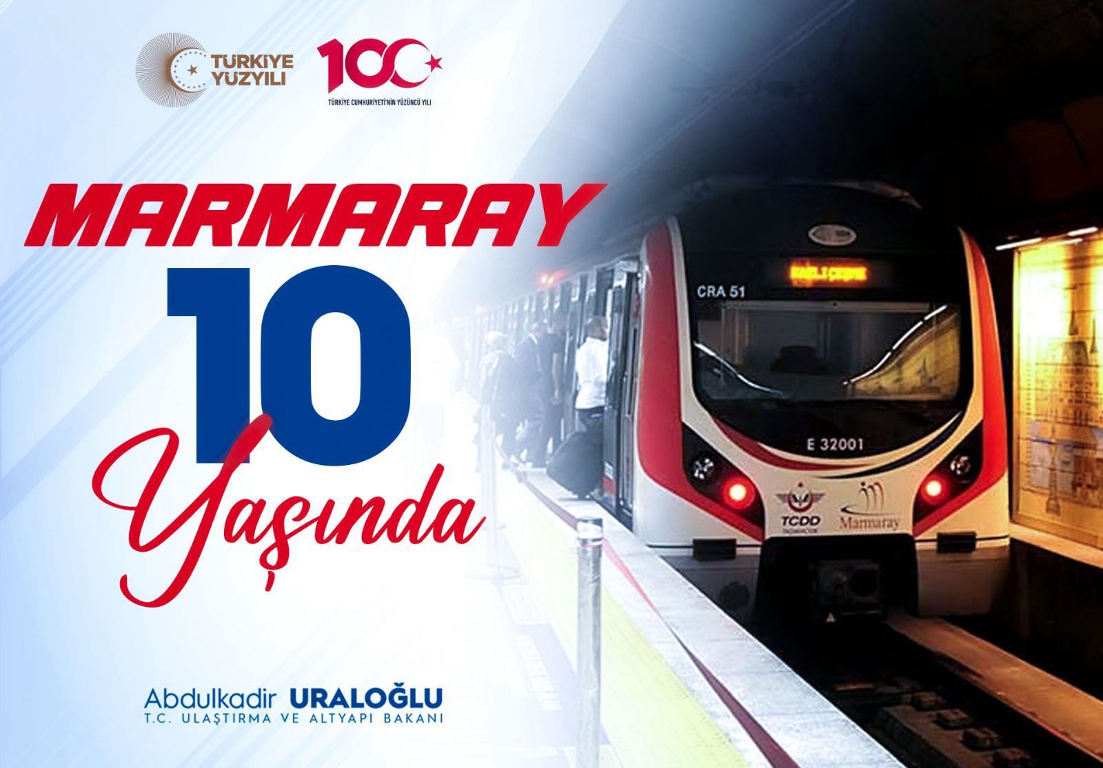 sağlayan Marmaray, Cumhuriyetimizin 100. Yılında 10’nuncu yaşını kutluyor.