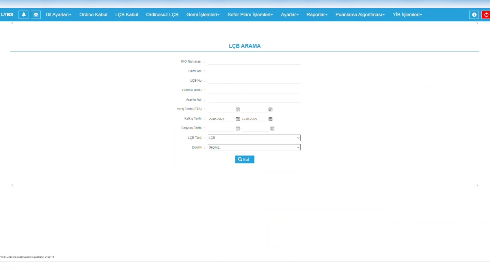 Müdürlüğü tarafından geliştirilen Liman Yönetim Bilgi Sistemi (LYBS),