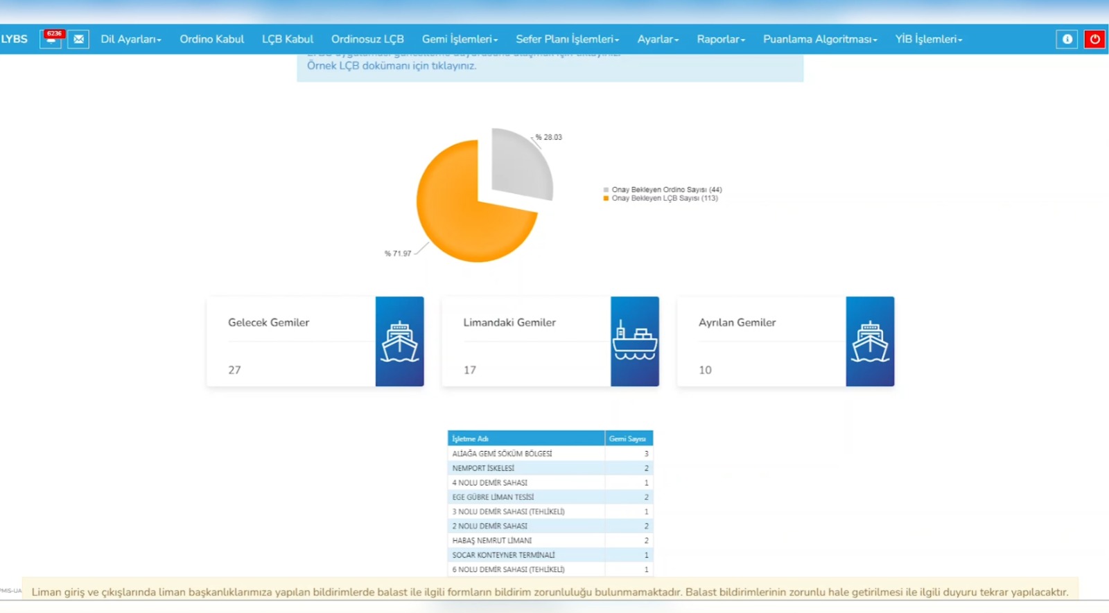 olarak çalışan LYBS ile; ülke limanlarına her yıl gelen yaklaşık 70 bin geminin