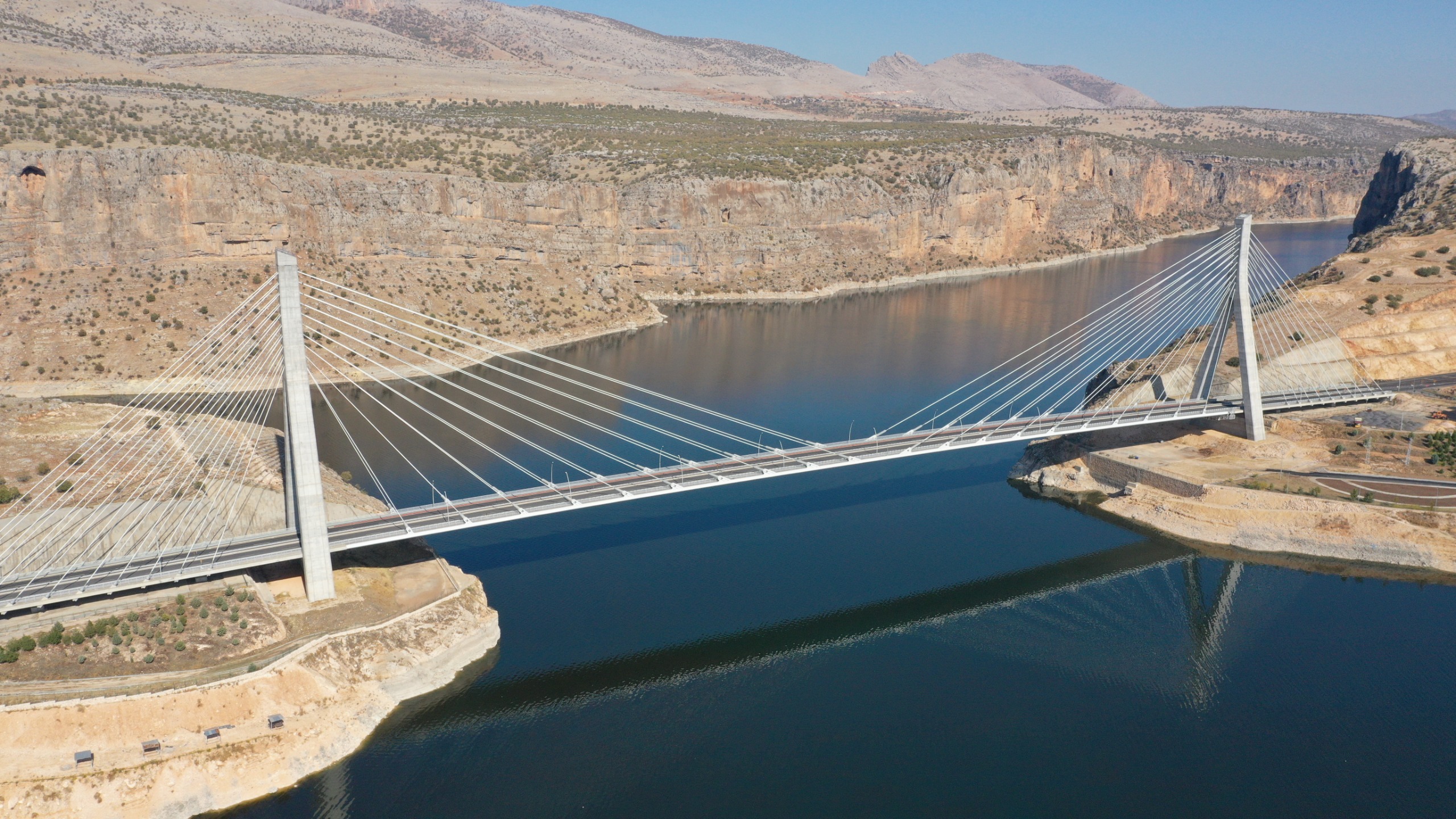 kısa karayolu ulaşımını sağlayan Nissibi Köprüsü, gergin eğik kablo askılı