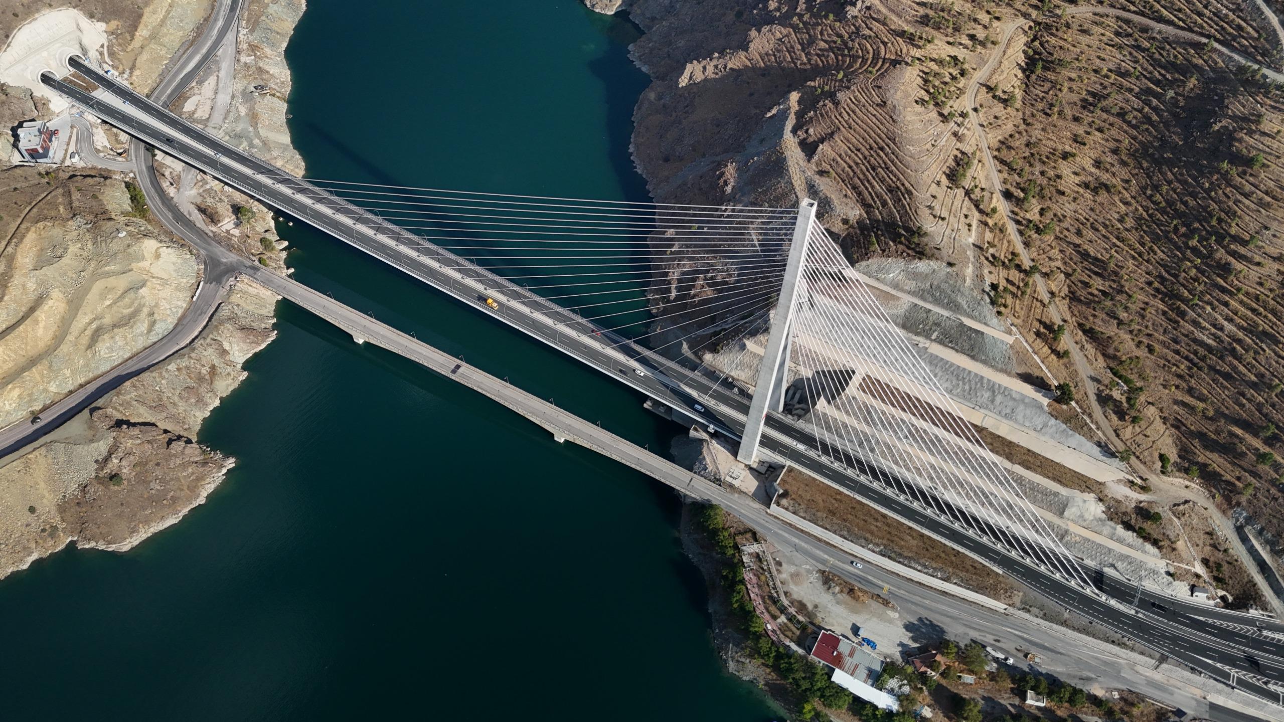 olduğunu belirterek, “Gergin eğik askılı köprümüzün orta açıklığı 25 adet çelik
