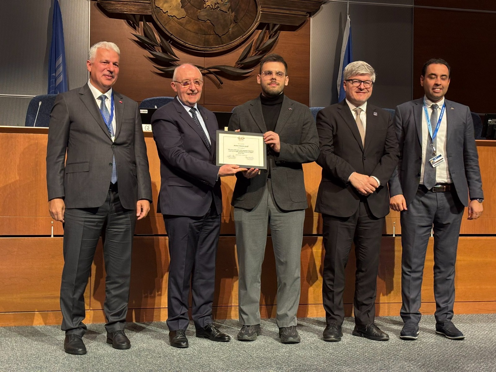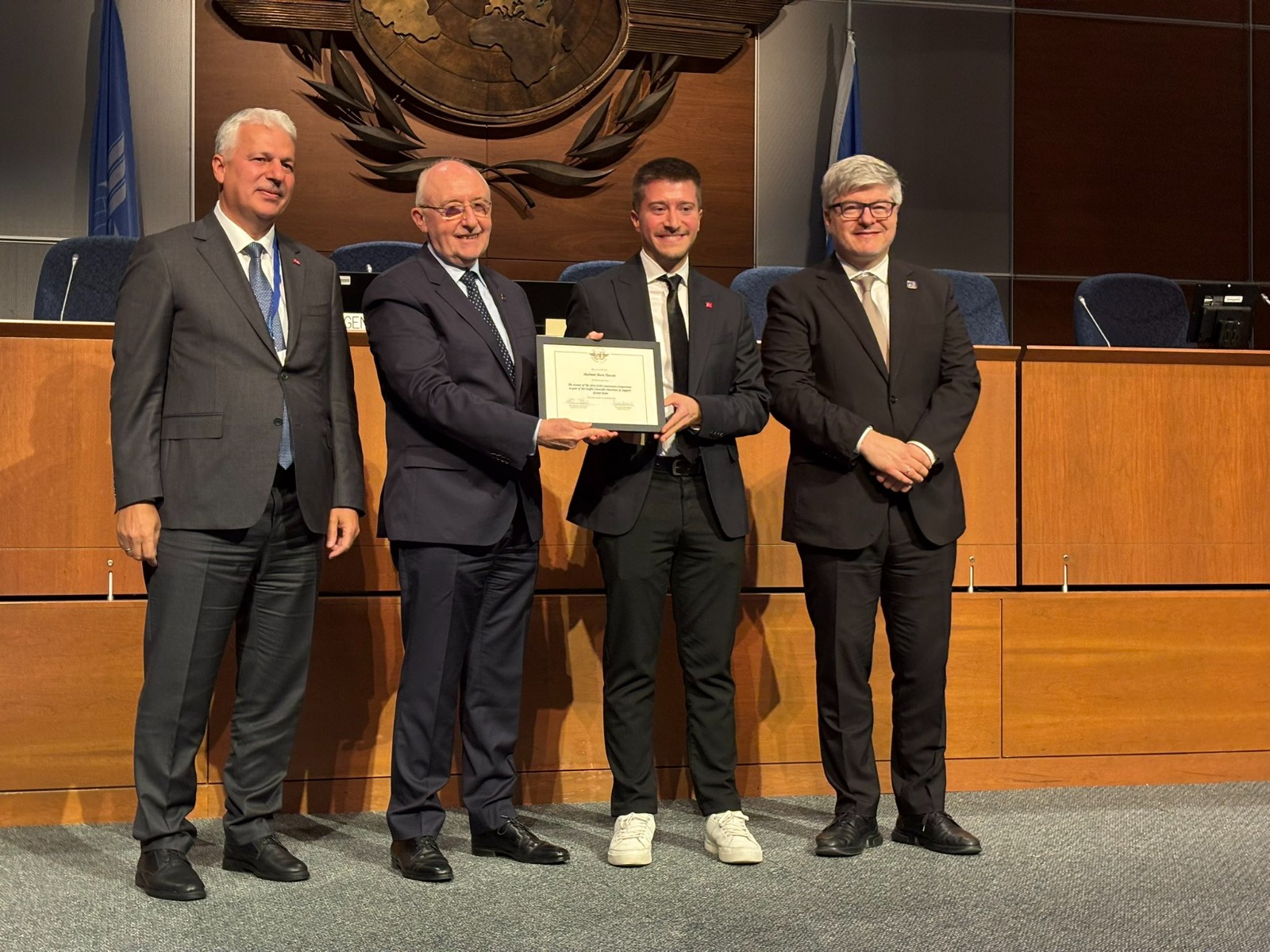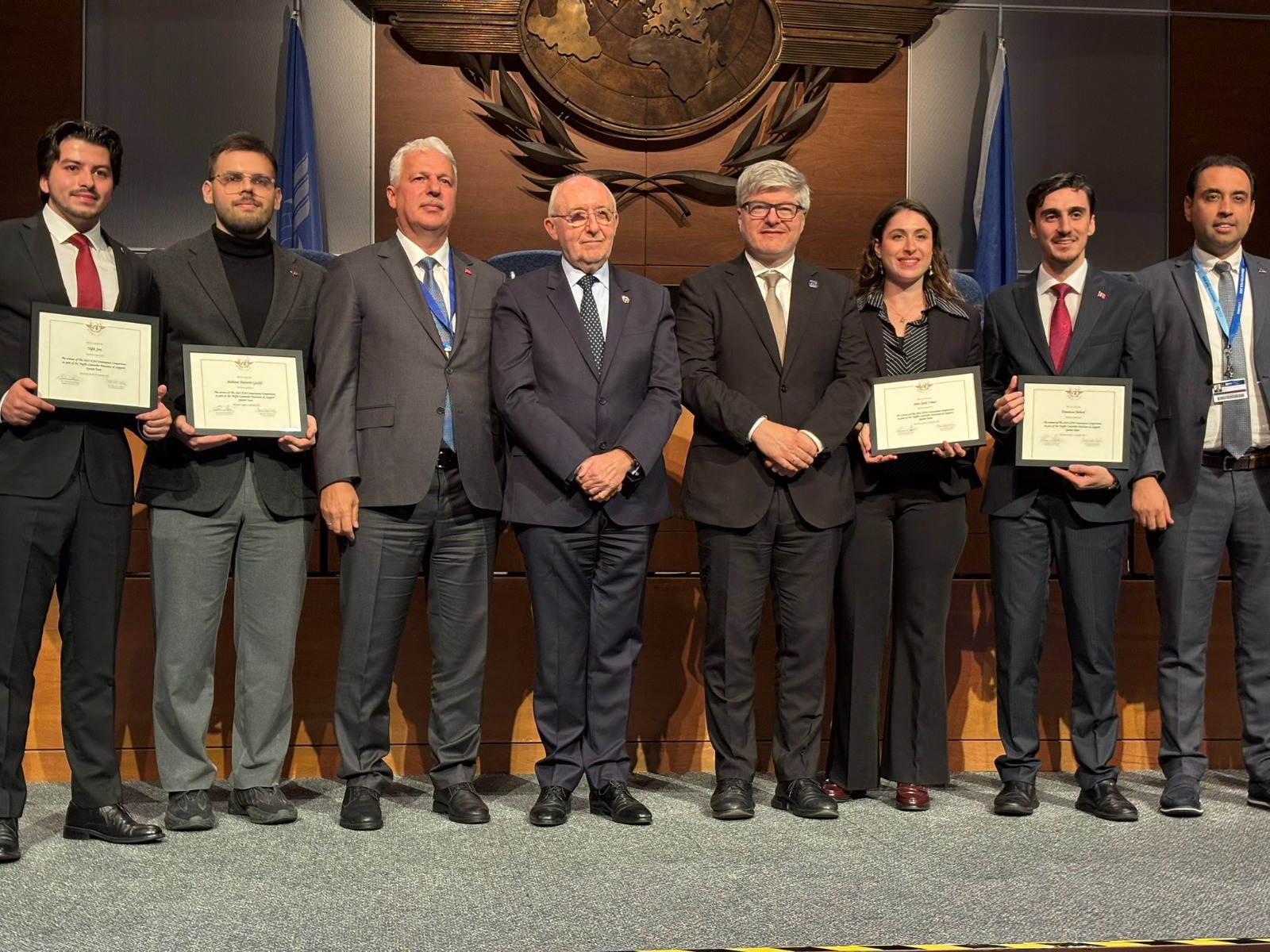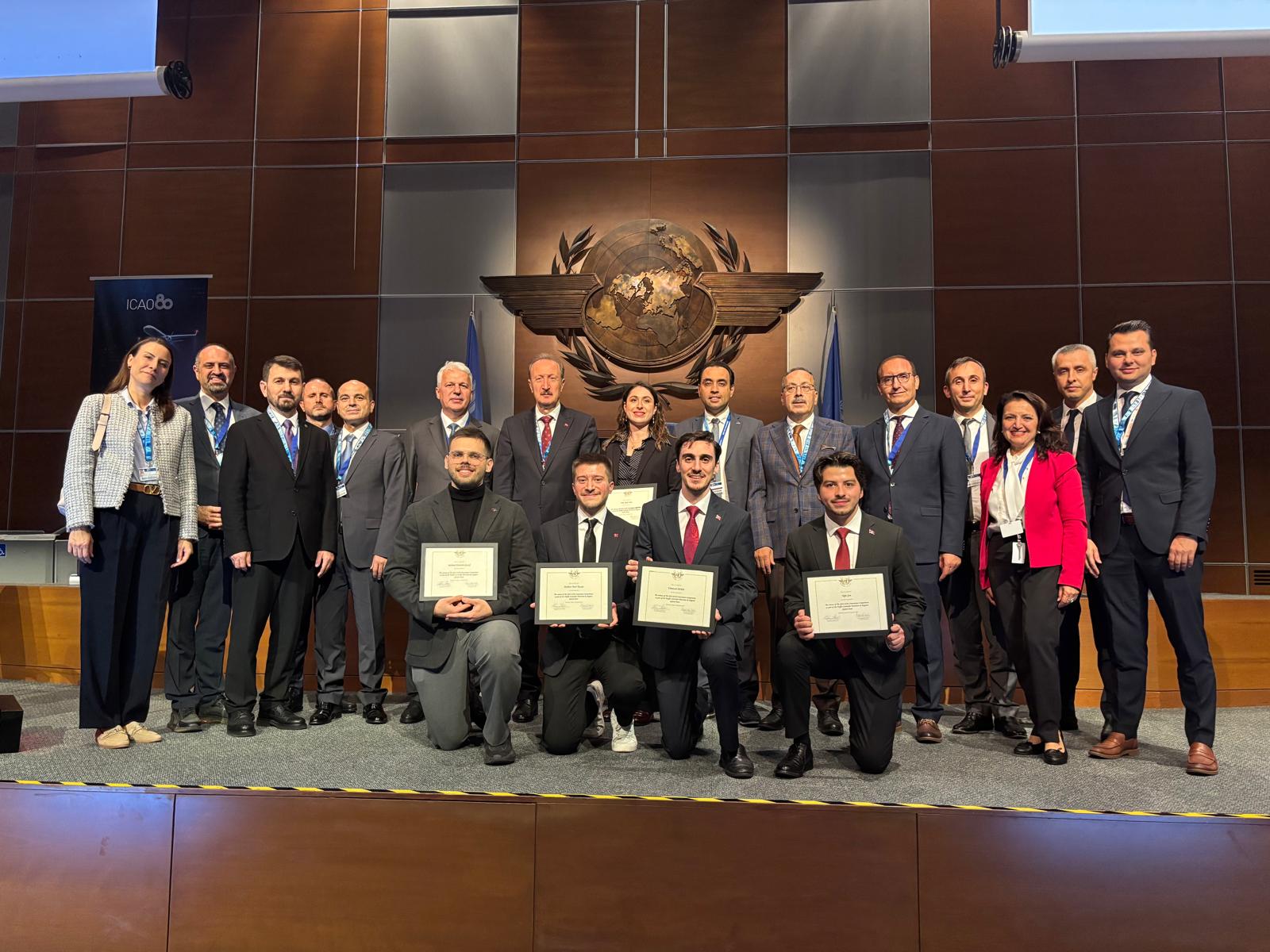 birincisi olan üniversite öğrencilerine ödüllerini Uluslararası Sivil Havacılık