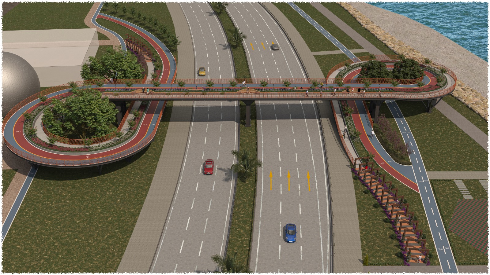 Üzerinde 4 metre genişliğinde bisiklet yolu, 2 metre genişliğinde yaya yolu ve