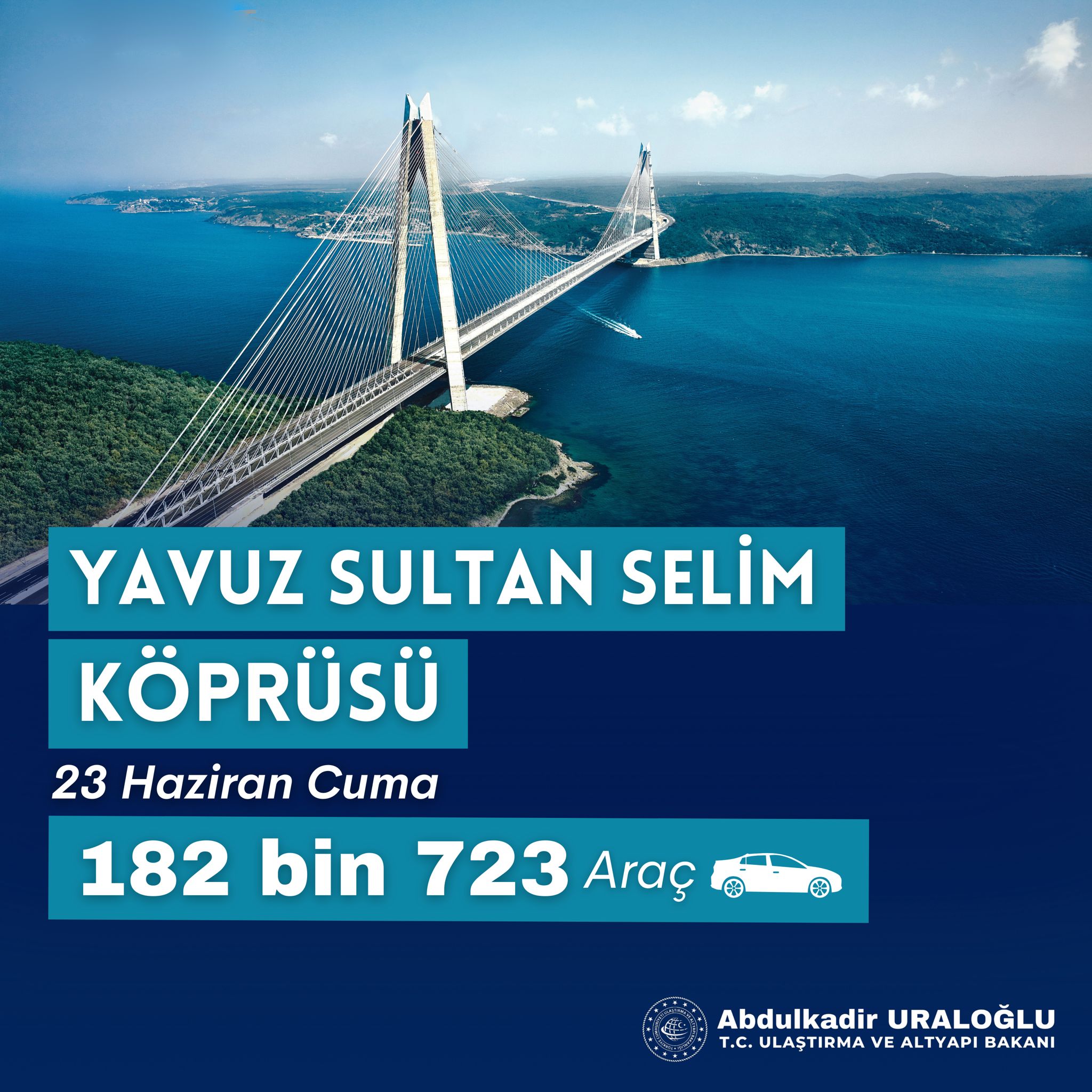 araç geçiş sayısı 80 bin 624 iken, 24 Haziran 2023 tarihinde sadece bir günde