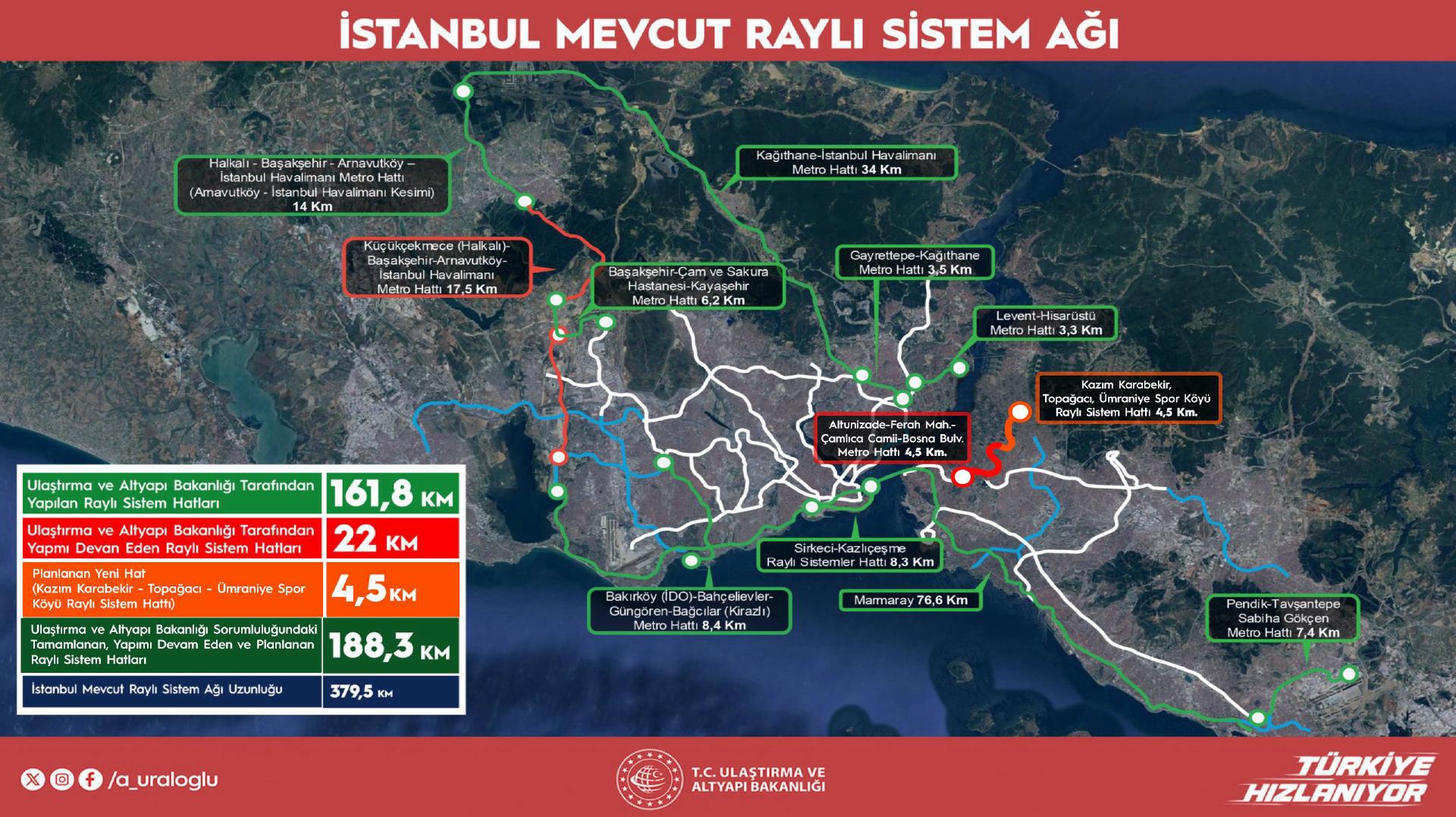 bittiğinde İstanbul’un raylı sistem uzunluğu yaklaşık 388,5 kilometreye