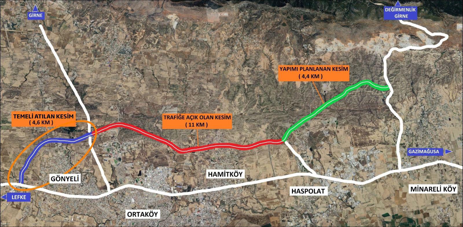 2 adet modern dönel kavşağın yanı sıra yolu Girne – Lefkoşa Yolu’na bağlayacak