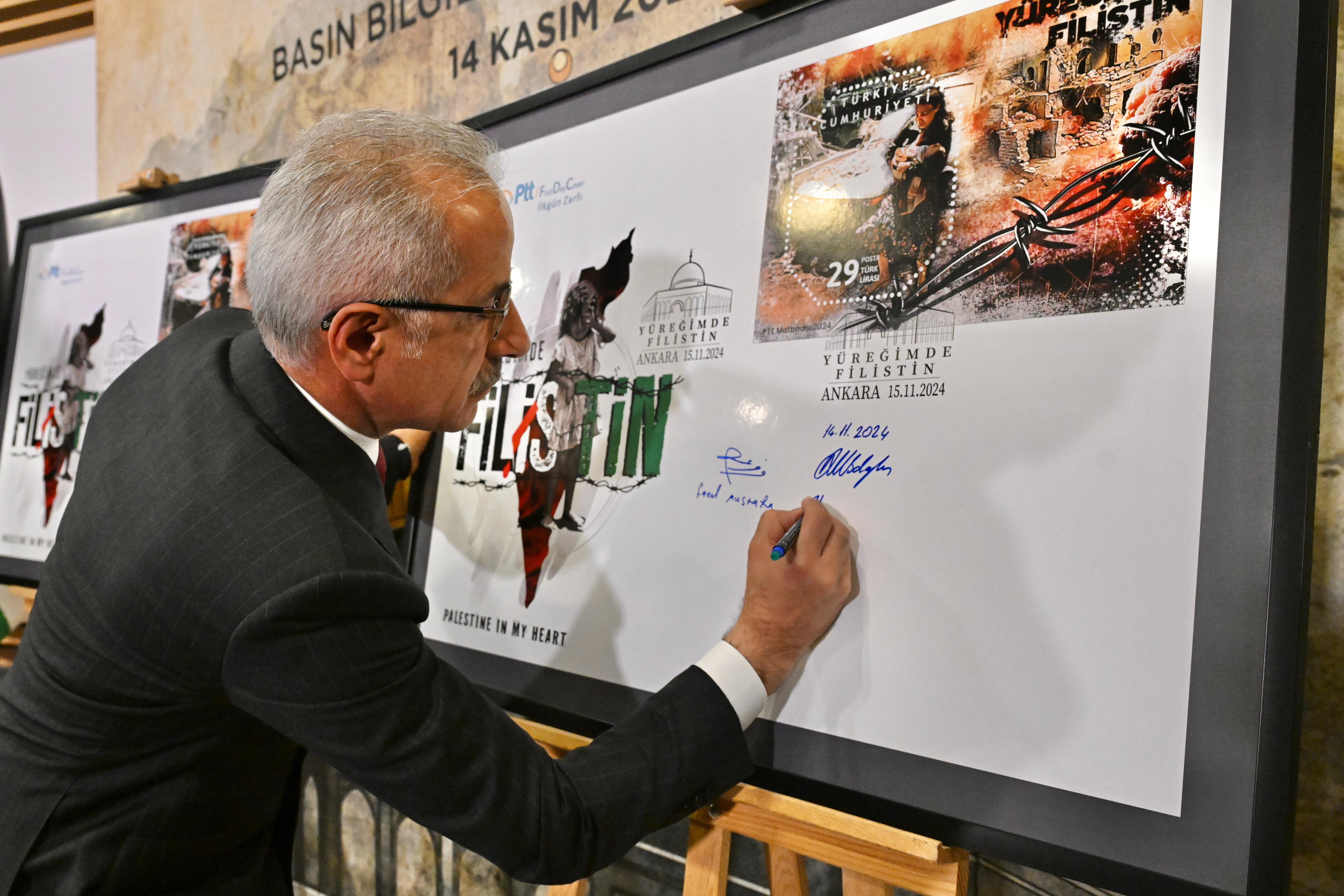 kullanarak hazırladığı “Yüreğimde Filistin” konulu anma pullarıyla Gazze’de